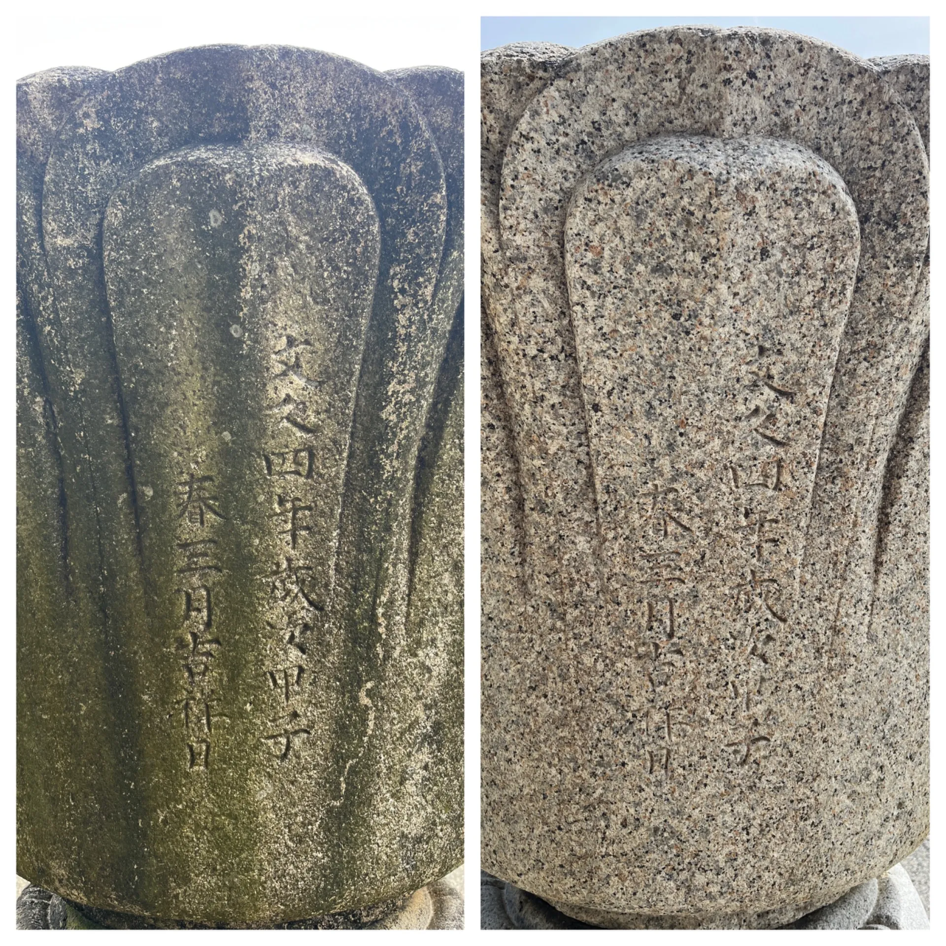 建立文久4年。161年前の水瓶。こんな古い石は初めてだし、これからもあるかどうかって感じですが綺麗にできるのか不安もありながらの作業でした。